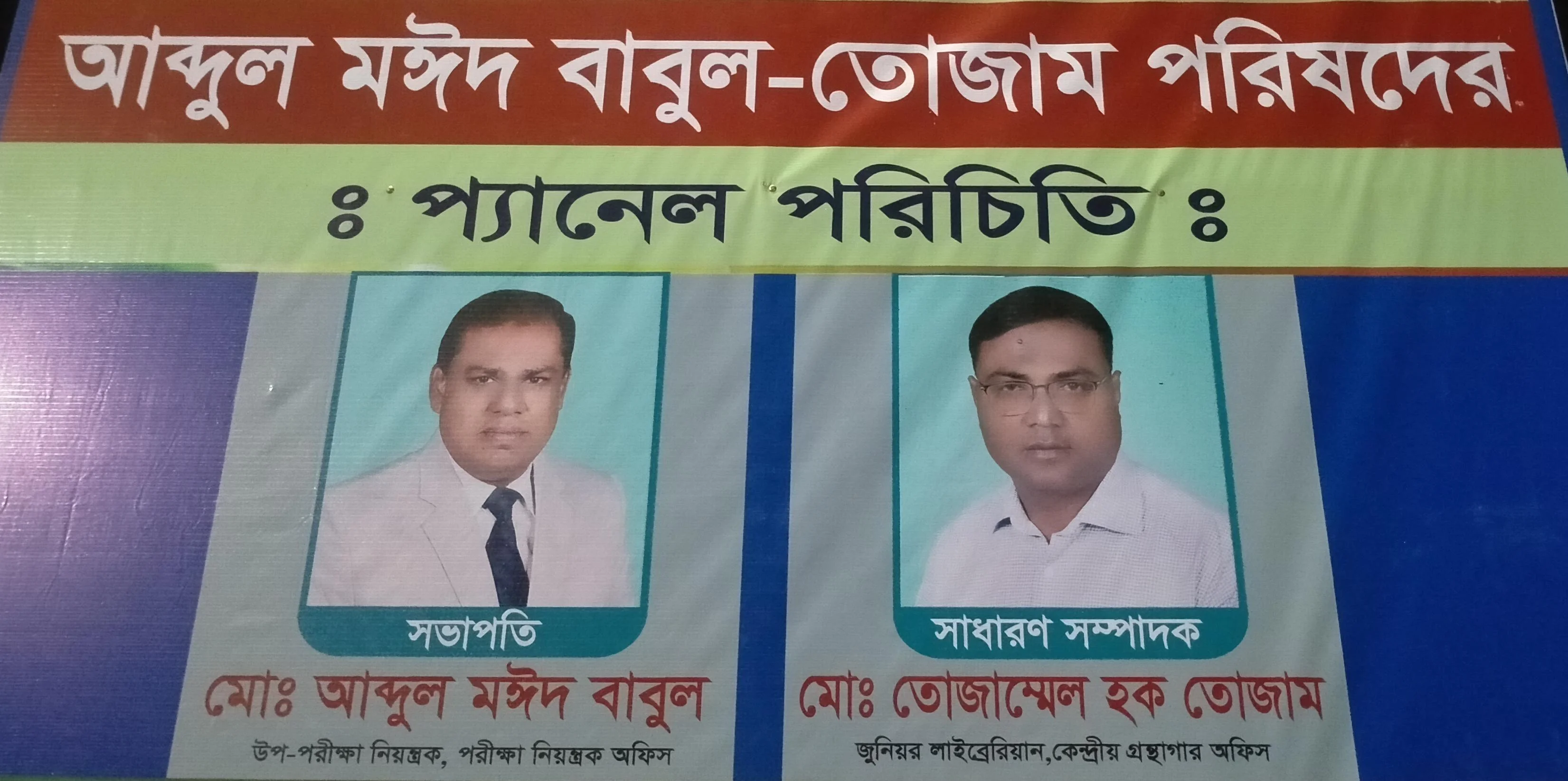 এ মঈদ বাবুল-তোজাম পরিষদের অন্যান্য নির্বাচিত সদস্যরা হলেন- সহ-সভাপতি পদে মেডিক্যাল সেন্টারে উপ-রেজিস্ট্রার ইয়ারুল ইসলাম (২৯৭) ও এস্টেট অফিসের উপ-রেজিস্ট্রার ড. ওয়াহীদুজ্জামান (২২০)। যুগ্ম-সম্পাদক পদে ট্রেজারার অফিসের উপ-পরিচালক মোহাম্মদ আলী জিন্নাহ (২৫১), কোষাধ্যক্ষ পদে আল কুরআন এন্ড ইসলামিক স্টাডিজ বিভাগের উপ-রেজিস্ট্রার জাহিদুল ইসলাম (২৪৮), প্রচার ও দপ্তর সম্পাদক পদে পরিবহন অফিসের উপ-রেজিস্ট্রার আরিফ হোসেন তুহিন (২৩১), সাংস্কৃতিক সাহিত্য-পত্রিকা ও ক্রীড়া সম্পাদক পদে হিসাব বিজ্ঞান ও তথ্য পদ্ধতি বিভাগের জুনিয়র লাইব্রেরিয়ান আব্দুর রাজ্জাক (২৭৭) এবং মহিলা বিষয়ক সম্পাদক পদে অর্থ ও হিসাব বিভাগের উপ-পরিচালক সুলতানা পারভীন (২৭৭)। এছাড়া সদস্য পদে থাকছেন শহিদুল ইসলাম শহিদ (৩৩৩), আবু জাফর আদম (২০৮), জাহাঙ্গীর আলম (২৬৩), সাইদুর রহমান (২৫০), ও আমিরুল ইসলাম (২৬৫)। এদিকে লতিফ-রিপু পরিষদের পরিবহন অফিসের শাখা কর্মকর্তা জাকির হোসেন ২২৫টি ভোট পেয়ে সদস্য পদে নির্বাচিত হয়েছেন।